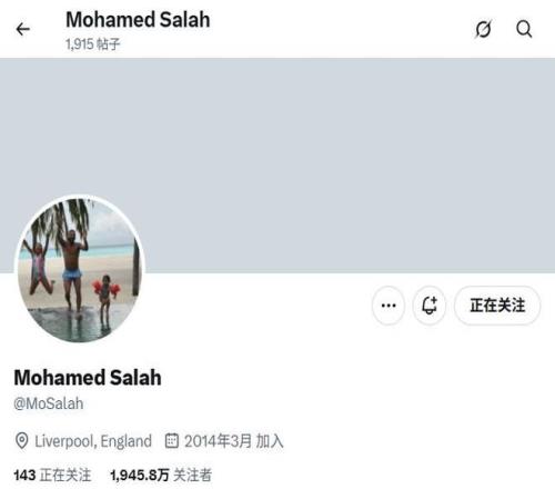 早些時(shí)候,薩拉赫更新了社交媒體賬號(hào)個(gè)人資料,將自己身穿利物浦球衣的頭像換成了個(gè)人家庭生活照。將奪冠慶祝頭圖換成了純灰圖片。